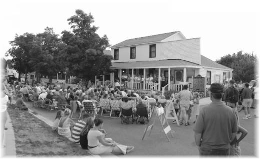 This year the staff of the Historical Society knew they were headed for good things when the weather finally cooperated for Monday night's traditional Music on the Porch. After several stormy years it was held on a balmy night, and each of the dozen musicians responded with an excellent performance. Glen Hendrix set a high tone at the onset with a half-dozen Irish jigs, followed by Signe Thomas' tap-dancing routine. Folk singers were abundant, including Island troubadour Barry Pischner, who included his song on the Bradley, which appears in the new history book, Volume 5. The two most appreciated acts were Northern Lights, four Island women (Mary Kay McPherson, Wendy White, Patty Cull, and Nancy Butler) who harmonize and play bass and guitar, and the Community Choir chorale group, well coached by Kathy Speck, which fit together all the parts of their songs with great depth and nuance.
