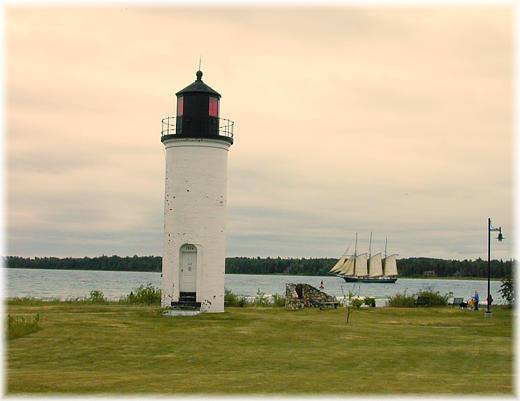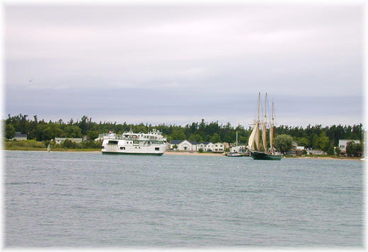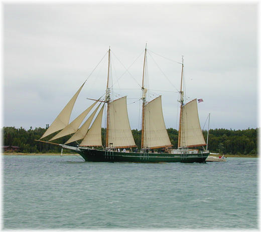 On July 16th, Beaver Islanders were thrilled by the arrival of a Tall Ship. The Denis Sullivan pulled into St. James Harbor on Tuesday evening and tied up at the Boat Dock. Built by a team of volunteers in Milwaukee, the three-masted wooden schooner is modeled after the cargo haulers that plied Lake Michigan in the late 1860s.