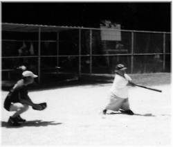 The umpires and scorekeepers voted the Most Valuable Player trophy to Brad and Drew McDonough. A fitting honor for these grandsons of Beaver Islands Joe Dimaggio, Joltin Joe Bud McDonough. But perhaps the most interesting aspect of the tournament was the TDS lead-off batter in their second game: Island slugger Harry Wanty, an obvious ringer. Just as Bill Veeck had done with his St. Louis Browns 51 years earlier, Rich Gillespie wanted an advantage. Veecks Eddie Gaedel walked on 4 pitches, and Harry took a pass too. His pinch-runner scored the first run, but the pitcher wasnt able to hold the lead. Gaedel only had one at-bat in the Bigs. Lets hope Harry can be induced to stand in again next year!