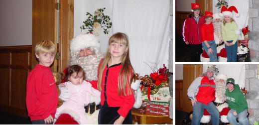 The rules were clearly printed, yet someone had forgotten one all-important phrase, from Santas point of view: kids only! Consequently, without that rejoinder, Santas delicate lap became fair game for all who braved the wintry weather: young kids, old kids, and adults. The weight was not the problem; from his many appearances in the Santa chair and on stage, we have all learned that Santa may be a lot of things but one thing he is not is weak. No, his body was not crushed by the weight of his biggest supplicants, but oh what they wanted! For example, Brad and Drew (right, above) wanted an ice bridge to East Lansing so they could skate to school. That might be beyond even Santa.