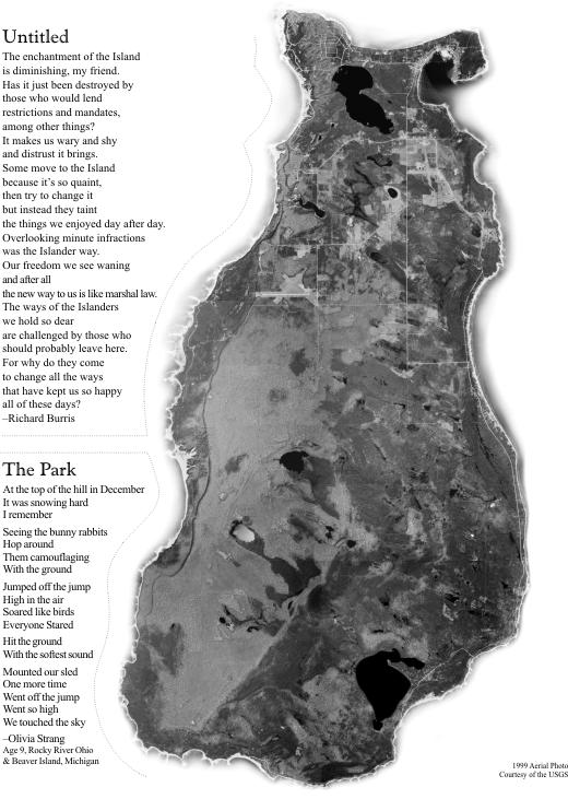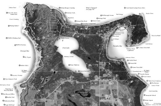 Since the photo was taken in 1999, the Island landscape has added some features: the St. James septic mound, the Gull Harbor Nature Trail, the power plant, the roads in the Karnes subdivision, the BIBCO new parking lot, and several buildings, including Eager Beaver, BITA, and over a dozen homes.