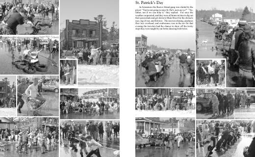 In Arranmore the Beaver Island gang was chided by the priest: You're not going to miss St. Pat's, now are ye? No, father, not if we can help it, they replied. For once the weather cooperated, and they were all home in time to dig out their green duds and get down to Main Street for the obstacle race, tug of war, and fish toss. The sun was shining, airplanes flew low overhead, and exuberance was in the airfor that evening the travelers had the chance to show off the tricky steps they were taught by our better dancing Irish twins.