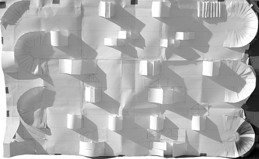 On April 14th the Township Board received a second presentation for a BMX track from three BICS students Christine Runberg, John Albin, and Dan Runberg, who had made a table-sized paper model to illustrate their ideas. The plan, for which they requested permission, not funding, occupied 111' x 176'; it featured four long runs, banked corners, a 10'-high starting block, a 6' jump, and 26 total ‘events.’