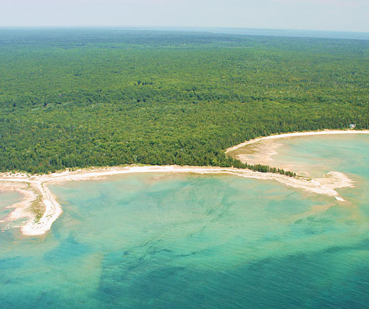 Ore Bay. An old trail is in poor condition. The shoreline is rocky